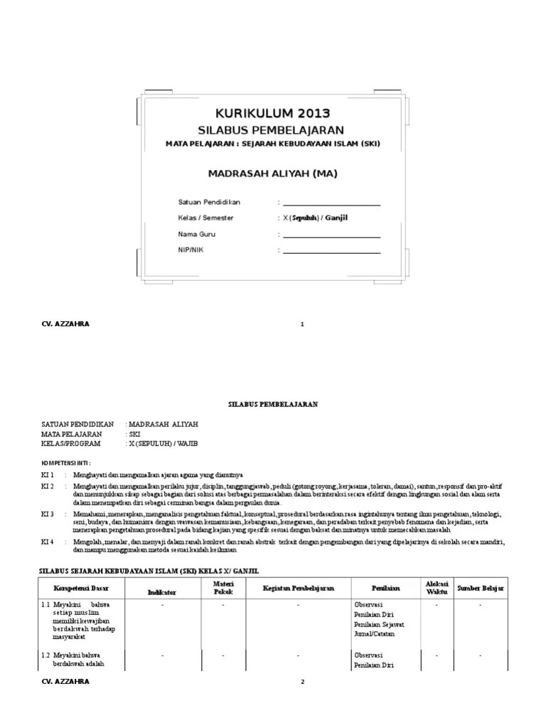 Download rpp ski madrasah aliyah . Ma hasyim asyari kelas / semester : Free download lengkap perangkat pembelajaran berupa rpp 1 lembar tingkat sma/ma semester ganjil mapel ski kelas 12 kurikulum 2013. Contoh rpp sejarah kebudayaan islam (ski) ma (madrasah aliyah) kurikulum 2013 ini kami sediakan untuk semester 1 dan semester 2, termasuk untuk . Untuk guru mapel ski jenjang madrasah aliyah (ma) kelas x/10, xi/11, xii/12, anda bisa menggunakan rpp ski ma kurikulum 2013 ini sebagai .