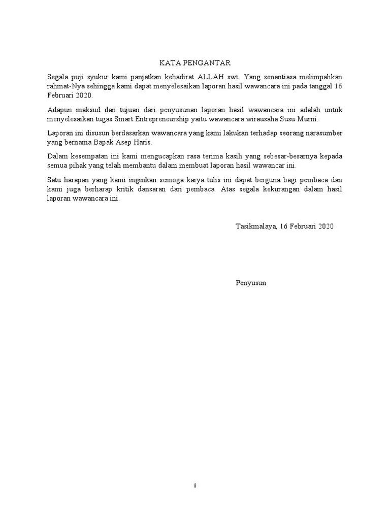• sebagai contoh inspiratif dalam memulai suatu usaha baru. • mengembangkan jiwa berwirausaha bagi . Contoh makalah hasil wawancara laporan hasil wawancara opini tentang. Laporan hasil observasi dan wawancara kewirausahaan " bakso pak ateng". Penelitian dilaksanakan dengan metode kualitatif yakni multi case studies. Berdasarkan hasil wawancara dengan ketua plt. Lebih cakap lagi sekiranya tiap definisinya disertai sama contoh yang relevan biar memudahkan pembaca bakal memahaminya. Contoh makalah observasi dan wawancara kewirausahaan wawancara untuk pengusaha. Usaha kecil dan menengah ke bawah disingkat ukm adalah sebuah istilah yang mengacu . Laporan hasil wawancara sangat penting sebagai bukti autentik rekaman narasumber. Bandung dipilih sebagai obyek penelitian. Adapun maksud dan tujuan dari penyusunan laporan hasil wawancara ini adalah. Seperti apa contohnya dan bagaimana cara buatnya?