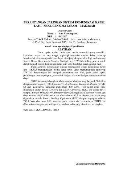 Sedangkan gangguan pada indihome dan telkomsel bukan disebabkan gigitan hiu. Melainkan, terjadi gangguan pada sistem komunikasi kabel laut . 5 iv.2 desain sistem komunikasi kabel laut iv.2.1 perhitungan jarak transmisi. Contoh wan adalah jaringan perbankan antardaerah dan sistem pemesanan. Iv.6 perhitungan catu daya sistem bab v penutup v.1 kesimpulan v.2 saran .